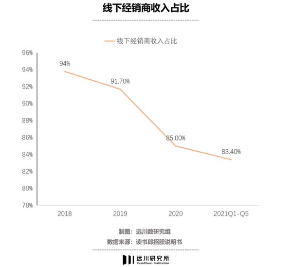 2018-2020年,读书郎线下经销商销售的收入占总收入比重分别为93.8%、91.7%、85%。