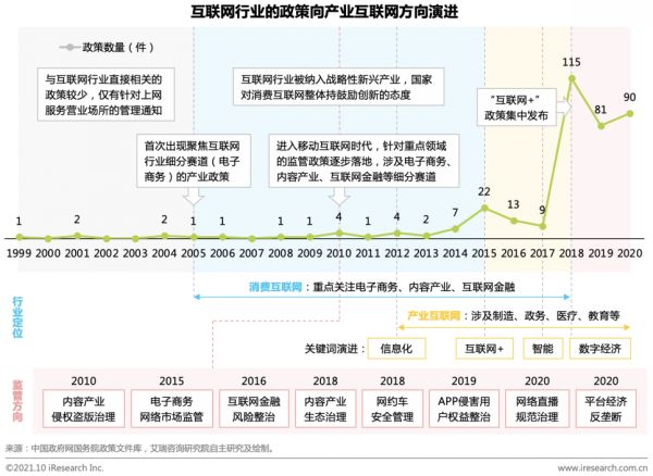 据统计,“互联网+”在2015年首次被写入政府工作报告后,在2018年迎来密集的政策发布,涉及多个产业和社会经济领域,其中又以制造业的政策关注度最高,2018年至2020年间工业互联网相关政策就有十余条之多。