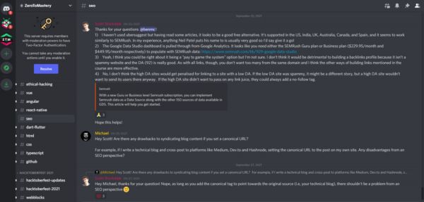 ZTM SEO 课程的私人 Discord 频道