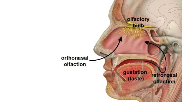 我们感知到气味其实有两条通路。鼻前通路和鼻后通路。| Wikipedia