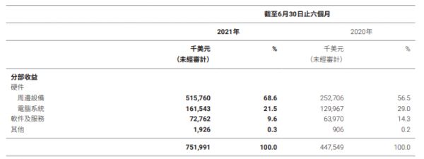 以2021年上半年营收构成来看,雷蛇硬件业务收入6.78亿美元,占总营收比重超90%。