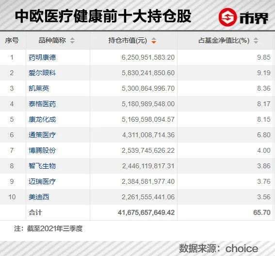 另外,三季报显示,中欧医疗健康前十大重仓股的持股集中度逐渐升高。