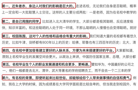 俞敏洪逻辑清晰地列出了六大进名校读书的优势,以此鼓励大家好好学习,天天向上。