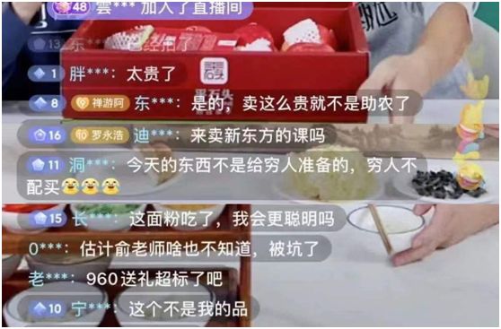而原本想要支持俞敏洪东山再起的网友,纷纷倒戈,刷起了买不起、太贵了、吃不起的负面评论。
