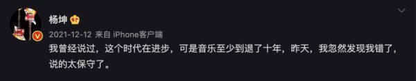 榜单发布后第二天,歌手杨坤在微博上表达了对行业的伤感,大概意思是时代在进步但音乐在倒退,并称,“音乐至少倒退了十年都是保守了”。不少网友附和,“全民对音乐的审美都被拉低了”,“现在好多套旋律的口水歌,静心创作的音乐人少了”。