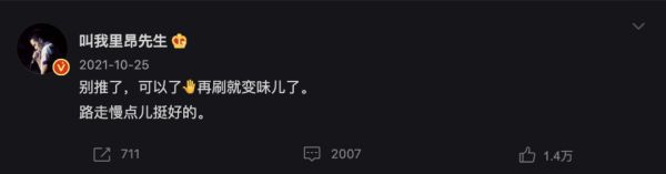 但盛名之下,歌曲背后的创作者却表现出了担忧。随后,《漠河舞厅》创作者柳爽在微博呼吁:“别推了,可以了,再刷就变味儿了。路走慢点儿挺好的。”——突然成为流量密码后,歌曲创作者却似乎不想与其他神曲共为一谈。