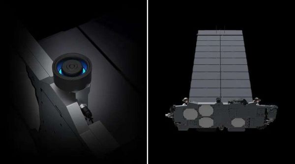 ▲星链卫星的高效离子推进器和太阳能电池阵列