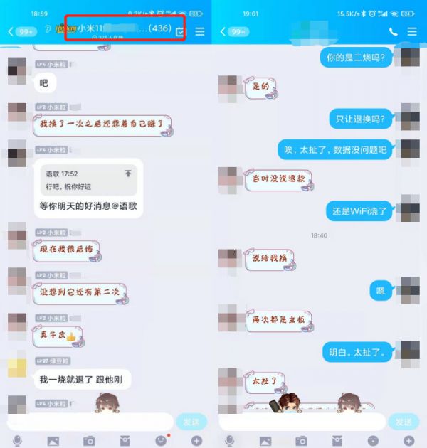 据新浪科技了解,消费者们还建立过几百人的交流群。在这个超过400人的群众,消费者们均遇到了上述类似问题。一名网名叫“小米粒”的消费者表示,小米11手机因主板被烧换新后,换新之后新机再次出现主板被烧,手机中的数据全部丢失了。
