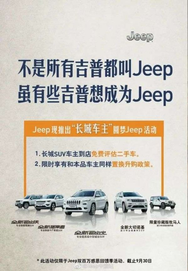 长城的意愿,最终却换回了Jeep一张略带嘲讽意味的官方海报