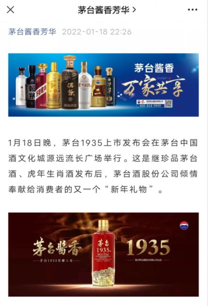 1月18日晚,贵州茅台(600519.SH)正式对外推出系列酒新品——“茅台1935”。对于这款新品,平安证券研报认为它是“茅台完成‘十四五’发展目标的战略级产品。”