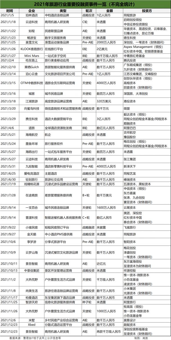 借此盘点,闻旅特别梳理了发生在2021年的40余起较为重要的投融资事件: