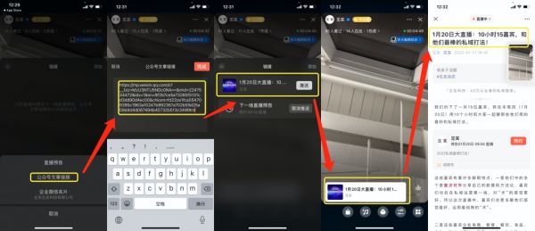 推送公众号文章前,要提前复制好需要推广的文章链接。直播开始后,点击“链接”,选择添加“公众号文章”,粘贴文章链接,即可生成可推送的文章。主播点击“推送”,即可将文章发送至直播界面底部。用户可在直播界面直接打开文章,阅读文章期间,直播界面会悬浮于文章页面之上。