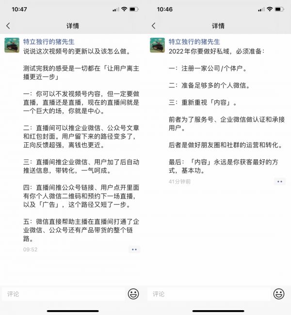 如果再进一步延伸一下,本次视频号的更新还有助于我们理解2022微信公开课上提到的:“视频号是对视频和流媒体直播形式的最佳承载原子化内容组件、最基础的组件。公众平台文章则是图文类内容的最原子化内容组件。