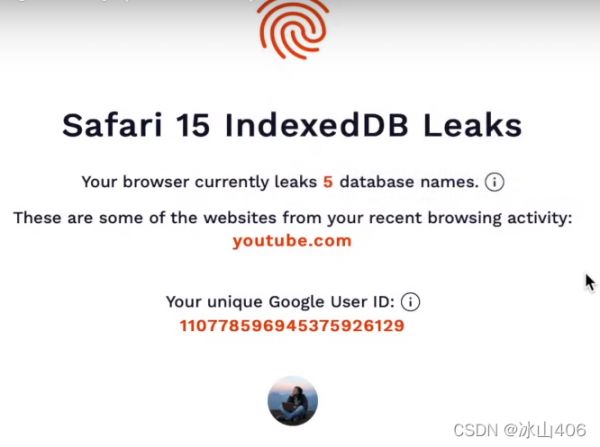 在苹果官网上,Safari浏览器一直以强大的隐私保护功能作为卖点。其中,智能防跟踪和隐私标签等功能满足用户需求。但在近日,浏览器指纹识别服务商FingerprintJS发布了一篇博客,经他们调查发现,Safari 15在实现IndexedDB API时存在一个漏洞,该API允许任何网站跟踪用户的浏览记录,甚至泄露用户Google帐户的部分身份信息。