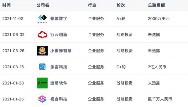 阿里2021年企业服务赛道投资项目