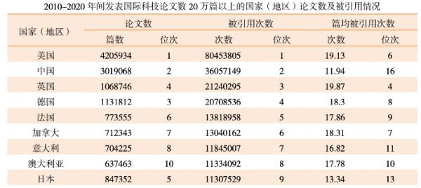 中国论文虽然平均质量不高,但是根据日本文部科学省2021年所做的一项报告中指出,中国在2018年全球排名前10%的被引用次数的论文数量就已排名世界第一;代表说中国也有产出一定数量的杰出论文,但是结合平均低于世界水平的论文引用次数的观点,能合理推敲出中国除了少数头部论文以外,剩馀的科技论文平均水平是更低于11.94次的平均被引用次数,更凸显出科技人才质量不均的事实。