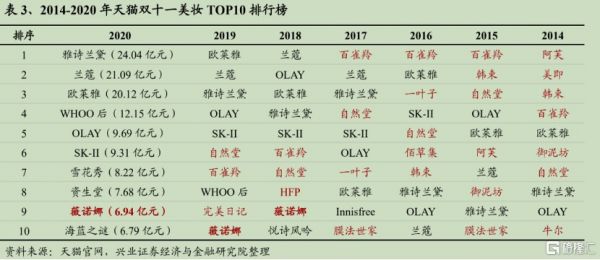从天猫的数据来看,此前尚在TOP 3之列的韩束,从2016年开始排名大幅下降。同年,上美集团推出新的子品牌一叶子,连上两年TOP 10榜单后,韩束和一叶子相继消失。