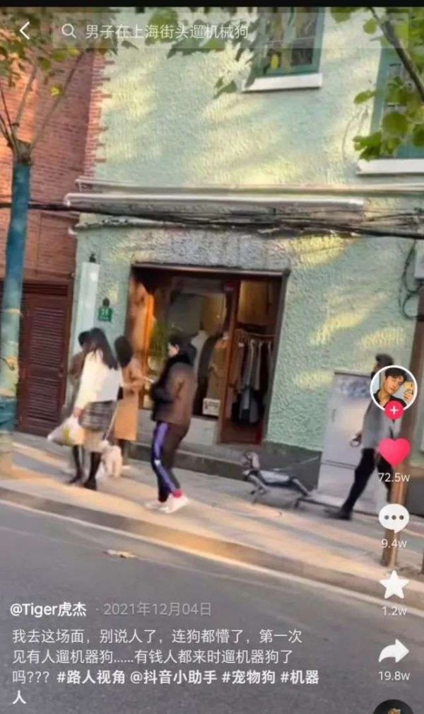 近期,短视频平台上频现四足仿生机器人的身影,有人带着机械狗在街头闲逛、跳舞,有人的机械狗遇到真狗,真狗因此狂吠不止,其中有一则视频获得超70万点赞。