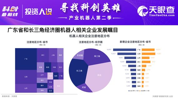 从相关企业的注册地区来看,广东省和长三角经济圈机器人相关企业发展瞩目