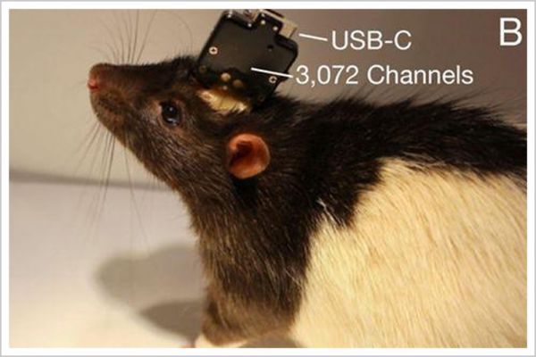 通过连接到头部的USB接口,芯片可以将老鼠大脑的电信号传输到计算机当中,并通过软件记录分析其大脑的活动。