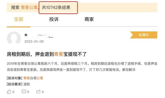 在黑猫投诉【投诉入口】平台,关于青客公寓的投诉超过1万条。