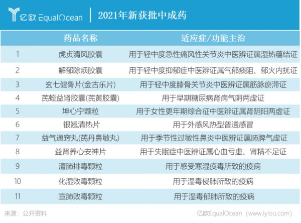 不久前,NMPA接连批准了淫羊藿素软胶囊、七蕊胃舒胶囊两款中成药新药上市,分别来自珅诺基医药和健民药业,用于治疗肝癌和胃脘疼痛。开年接连两款新药获批其实是延续了去年中成药创新的“迅猛”势头,2021年被称为中成药新药的“井喷”之年:只有11个品种获批,却已多过了之前3年的总和。