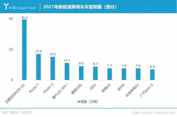 比亚迪纯电、插混两条路线同时发力,新能源乘用车全年销量59.4万辆,同比增长231.6%;主打小型低端市场的上汽通用五菱MINI EV累计销量达55万辆;特斯拉上海工厂的年产量达到了48.3万辆,该品牌在中国的交付量为31.9万辆。