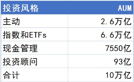 图/贝莱德的AUM构成,按投资风格划分,单位:美元