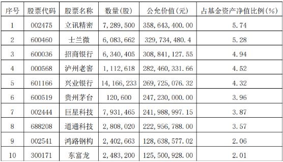 翻看贝莱德中国新视野混合的前十大重仓股,多数为行业龙头,第一大重仓股是立讯精密,占比5.74%,士兰微及招商银行分别位列第二、第三。另外、泸州老窖、贵州茅台等白酒股也显示名单。季报称,本基金主要布局于食品饮料、消费电子、受益于国产替代的半导体、医疗服务等,同时也适当布局了该基金经理认为被低估的部分成长类银行股。