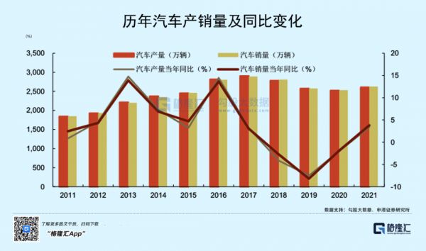 但也需要看到,汽车的整体销量虽然同比反弹,但增长也仅有3.8%,没有跑赢GDP。同时2021年的传统燃油车销量减少了102万辆,同比下降6%。