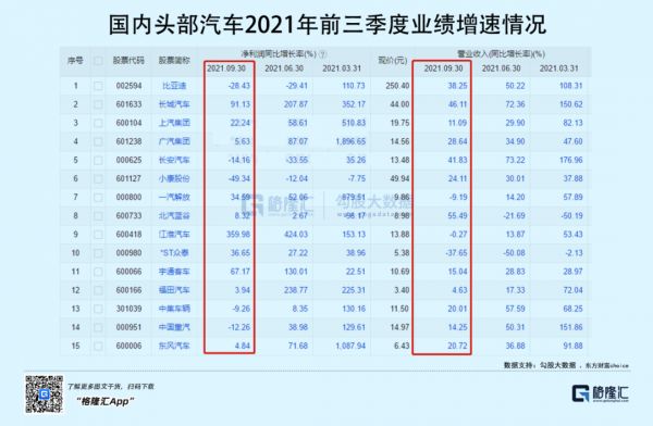 2021年的季度财报显示,多数汽车厂商就已经出现利润增速明显回落,甚至增收不增利的迹象。