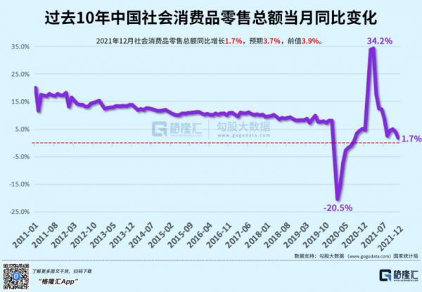 去年我国GDP从一季度同比增长18.3%,到二季度的7.9%,三季度的4.9%,到四季度增长4%,如此大阶梯式环比下滑说明后劲乏力,反应在消费需求端,12月社会消费品零售总额同比增1.7%,大幅低于预期的3.7%,剔除近两年的异常值,过去10年的国内社零数据在持续走低,居民的消费欲望越来越难激发起来。