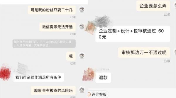 在企业端,主要是提供封面设计和审核方面的服务。需要说明的是,可能是受平台限制的影响,部分商家已不提供企业端开通权限上的服务,至于所谓的审核工作,主要是帮助企业客户修改封面以通过平台审核,并收取五六百元不等的费用。