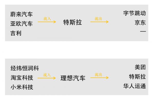 另一方面,互联网企业在向技术创新转变的过程中,需要更多产业从业人才帮助企业更加精准的提供产品和服务。比如汽车行业“新四化”需要算法,5G技术、人工智能、大数据等多项技术和汽车本身适配。从脉脉调研数据也可以看到(图6),字节、京东、美团、百度等互联网企业正在吸纳新能源汽车行业人才。