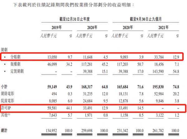 且公司在分账剧上有一定优势,分别于2018年及2017年开始参与制作首个分账网剧《等到烟暖雨收》及首个分账网络电影《伏狐记》,至此成为最早分别参与分账网剧及分账网络电影分部的市场参与者之一。