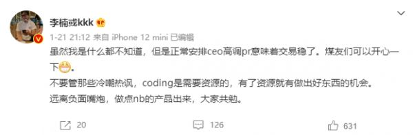 魅族方面则称,还没有相关消息。不过,魅族科技的前任高管、魅蓝品牌总裁李楠却在微博中发文称:“虽然我是什么都不知道,但是正常安排CEO高调pr意味着交易稳了,煤友们可以开心一下。”