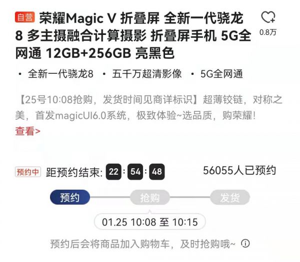 (荣耀Magic V预约量 截至1月24日11时左右)