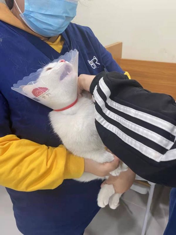 为了照顾生病的“大白”,张姗和男友不仅投入了大笔金钱,也耗费了大量精力。张姗的男友专门腾出一个下午时间陪猫输液,在2、3个小时里,他只负责一件事——给“大白”陪床,安抚它在输液的时候不要乱动。