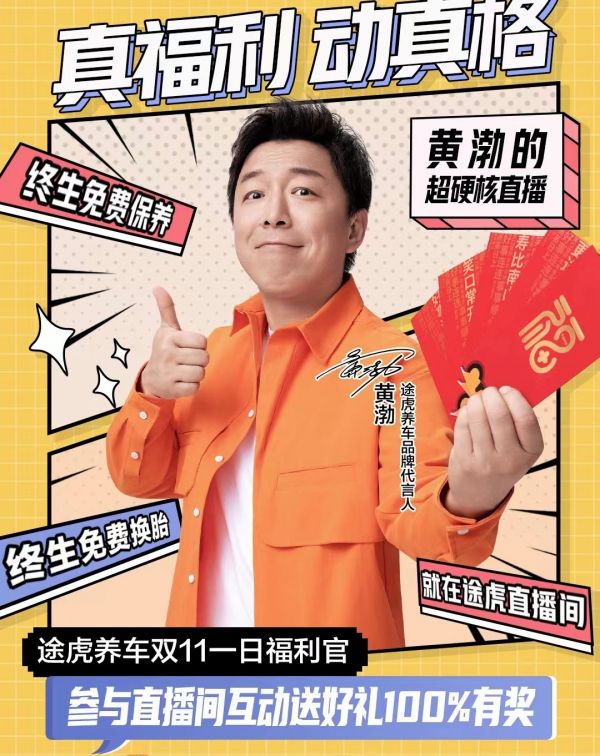 目前,途虎养车的代言人为一线演员黄渤,同时在去年双十一期间,途虎养车还邀请了网络流量担当,脱口秀大王周奇墨、人气选手何广智做宣传。