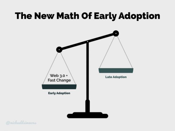 当我们面对一项巨大的新技术、新工具,或世界上其他呈指数增长的变化时,我们是应该效仿贝佐斯,全力以赴,还是应该坚持自己的专长领域?换句话说,我们应该成为早期采用者还是落后者?