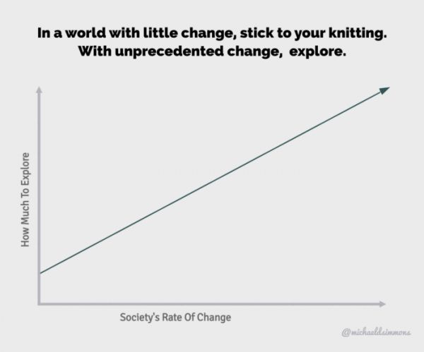 总结:如果你认为今年很疯狂,那么在未来几年,事情会变得更加疯狂。这一切都很重要,因为变化的速度是“杰夫·贝佐斯困境”中的一个关键因素。在一个停滞的世界中探索太多,你就会分心。在一个瞬息万变的世界里过于专注,你就会被打乱。