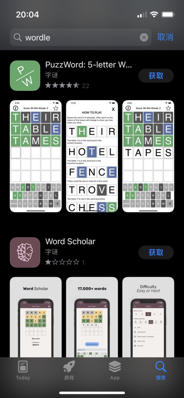 可能有人会认为笔趣阁没有自己的App,这些山寨应用其实也无伤大雅,苹果没有必要肃清。然而前段时间Wordle的例子证明苹果并不是这么想的。前段时间,拼字游戏Wordle在Twitter上走红,App Store和Play Store的排行榜上也能看到Wordle的身影。但问题是,Wordle是一个网页游戏,它既没有广告,也没有本地客户端。也就是说,App Store上那些需要花钱订阅的所谓Worlde,其实都是盗版的山寨应用。