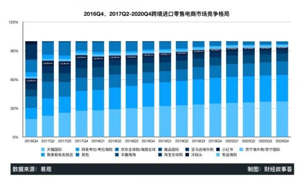 然而到了2017年,小红书的电商业务风头不再,市场份额持续降低。易观数据显示,一路下行到2020年末,在跨境电商领域,小红书市场份额仅剩2.4%。