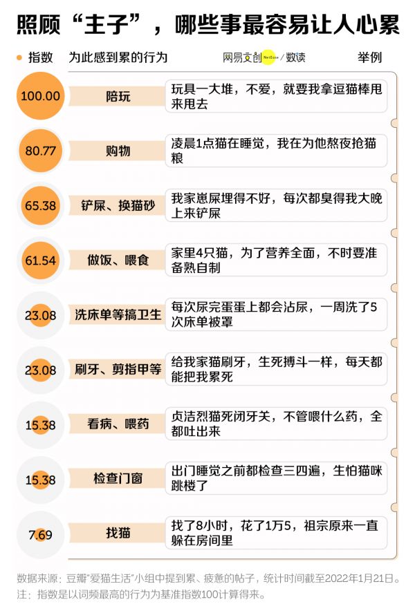 在豆瓣小组“爱猫生活”里,很多职场人提到自己虽然常要加班到很晚、三餐有时都顾不上吃,但猫猫绝不能受苦,几千元的智能喂食器、智能饮水器、智能宠物厕所都得安排。