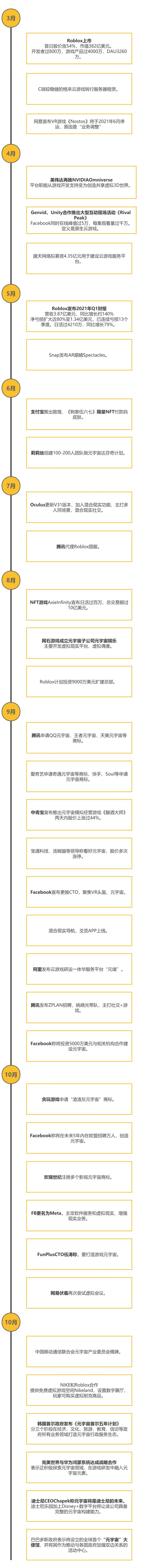 所以,我们分企业观点、投融资、主要事件三个部分,做了一个2021元宇宙时间轴。