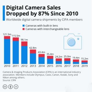 全球数码相机的销量 图片来源:statista