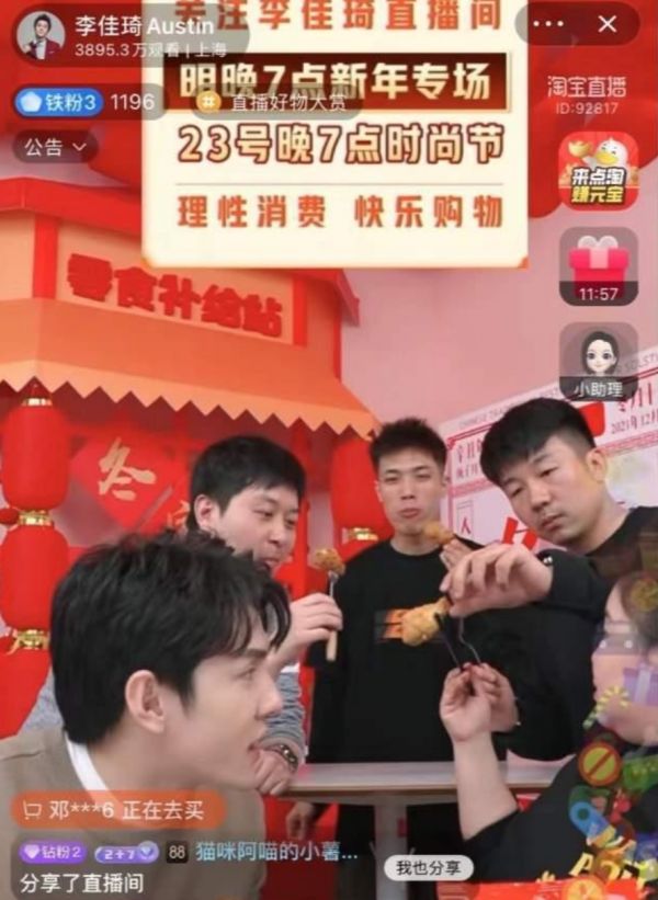12月20日,薇娅全网账号封禁第一晚,李佳琦的直播间迎来了超3000万的观众流量。此后一天的零食节,李佳琦直播间的观看人次一度接近5000万。