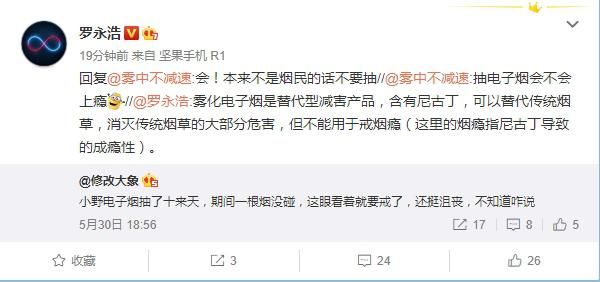(原标题:罗永浩:电子烟可替代传统烟草 不是烟民不要抽)