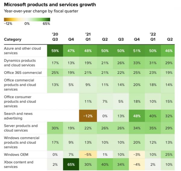 微软各项业务收入,图片来自CNBC