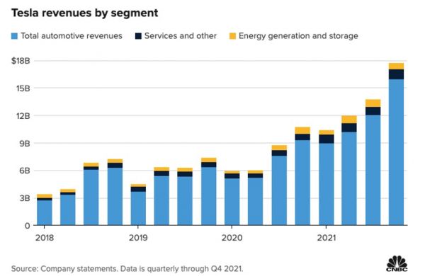 但跟微软一样,从分项业务上来看,特斯拉仍然有美中不足的地方。特斯拉第四季度共交付了 30.86万辆电动汽车,整季汽车业务收入为159.7亿美元,同比增长71%。全年共交付93.6万辆汽车,较去年全年增长87%。